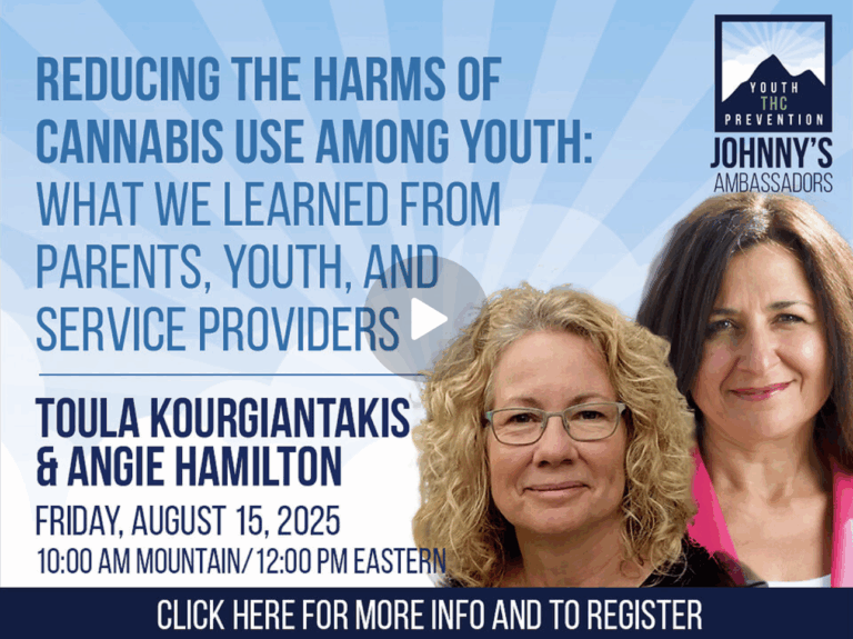 Reducing the Harms of Cannabis Use Among Youth: What We Learned from Parents, Youth, and Service Providers. Presented Aug. 22, 2025 as part of Johnny’s Ambassadors Expert Webinar Series by Kourgiantakis, T. & Hamilton, A.